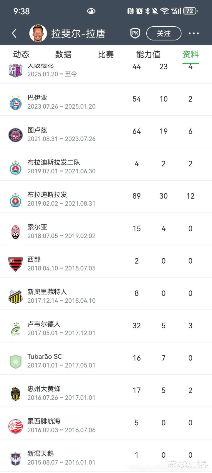 今年年初,拉斐尔-拉唐被巴伊亚俱乐部租借至大阪樱花效力。现年30岁的拉斐尔-拉唐共为大阪樱花出战44场比赛,贡献23粒进球+4次助攻。虽然有球迷发现,他在樱花踢球抽象时刻也不少,但数据不错。从该外援的职业履历来看,是一名浪迹天涯、四海为家的射手,是一个打工皇帝。