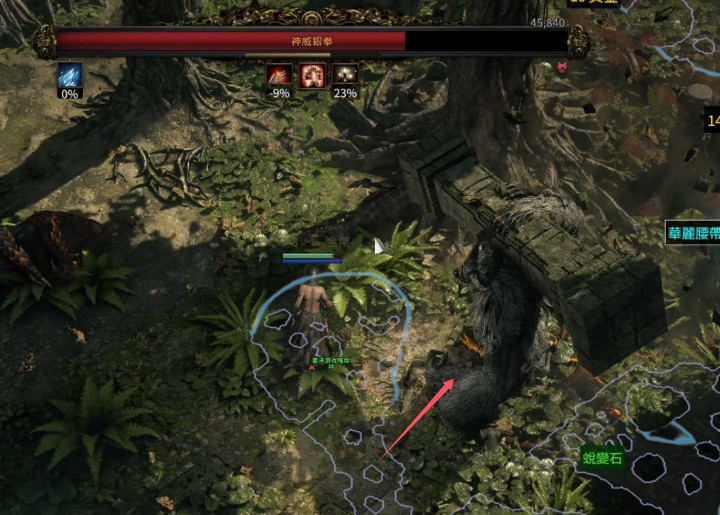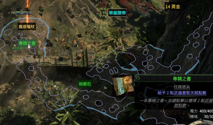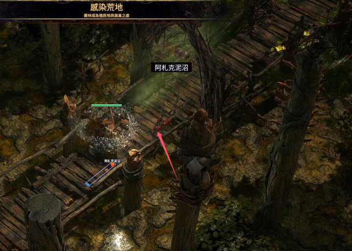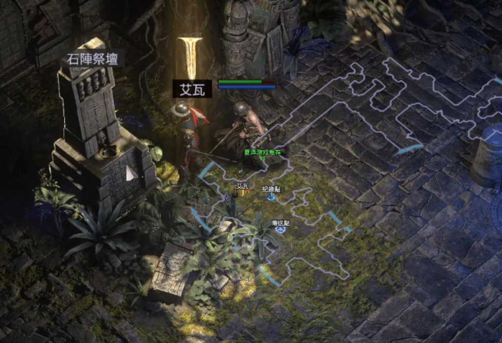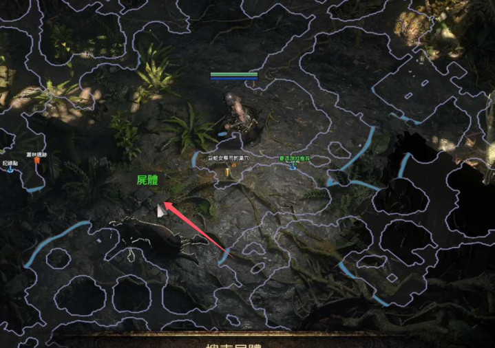 接下来我们去到丛林遗迹,在这张图里我们需要一直探图,然后找到神威银拳。也就是这个白毛大猩猩将他击杀之后可以获得2点天赋点。这张图我们是一定要找站点的,在站点旁边有我们必做的一个支线任务,需要下到剧毒墓穴里面。在剧毒墓穴里面找到尸体。它会掉落尸蛇毒液。然后我们回家,找到瑟维和他对话之后可以获得三瓶药剂这里要注意他第一瓶药是有bug的,并不是回血,而是眩晕门槛现在好像已经改好了。