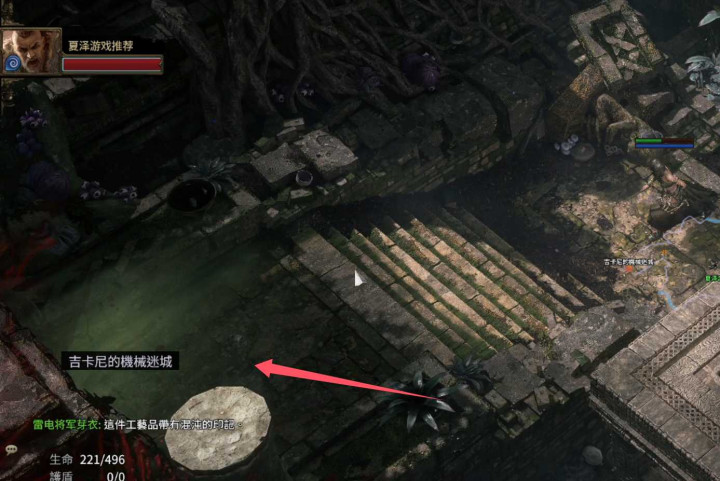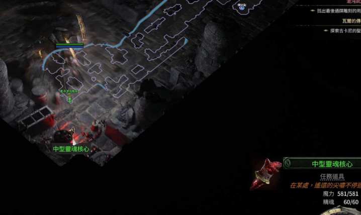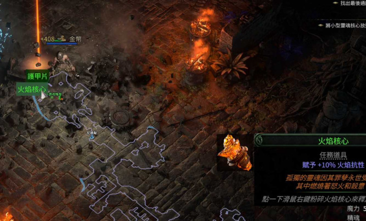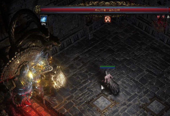 进入机械迷城之后,我们首先需要找到小型灵魂核心。然后在石阵祭坛这里将灵魂核心插入,就可以开启之后的路了。在之后我们需要找到两个灵魂核心。但是这张图里一共有三个插入小型联合核心的点,有一个是保险箱的,我们不需要管。剩下两个,一个是通往下一张地图的门儿,一个是这张图要打的支线boss。这个支线boss一般都在右上角。将他击杀之后会掉落火焰核心,会给我们额外加10%的火焰抗性。然后就是在左上角找到通往下一张地图吉卡尼圣域的路。