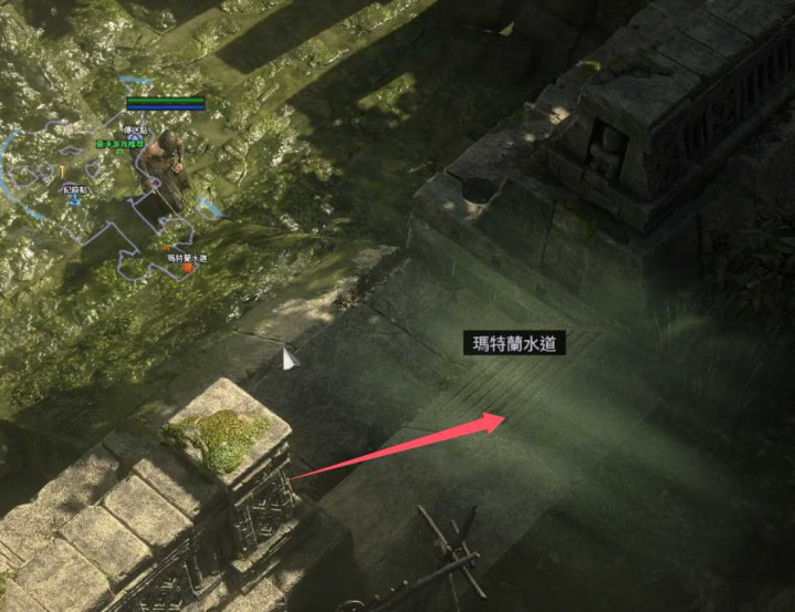 然后我们需要返回感染荒地,将大型灵魂核心装入石阵祭坛中。石阵祭坛就在传送站点的旁边。在装完了之后,我们就需要进入旁边的玛特兰水道了。