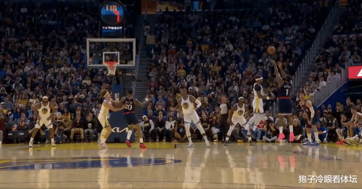 到了第三节,哈登打了不到一半就被换下,期间还被库里生断,保罗带着轮转阵容登场,进攻端没有投篮点,防守端漏洞百出,单节14-32,勇士带着15分的领先进入末节。