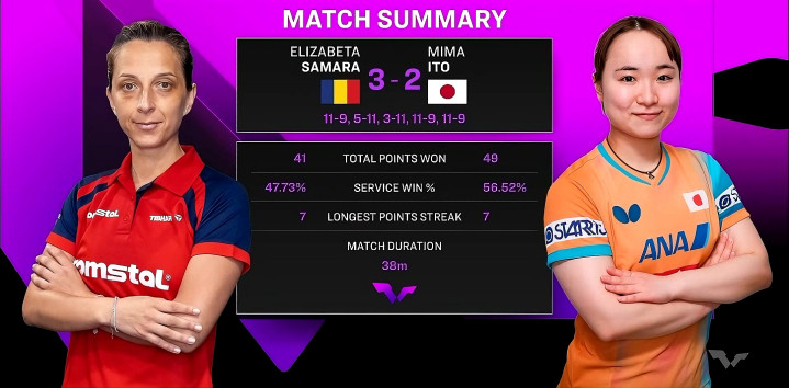 萨马拉(罗马尼亚)3-2伊藤美诚(日本)
