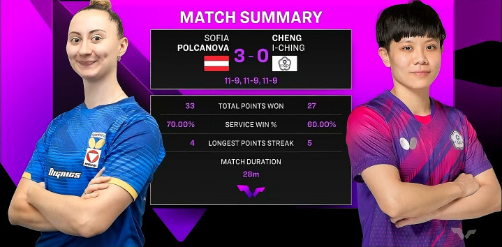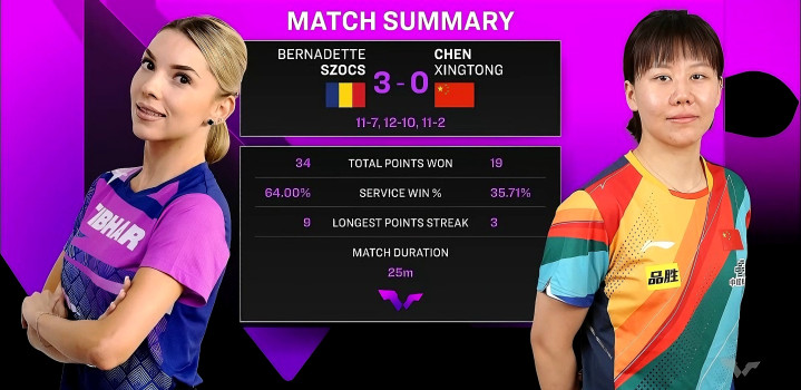 国乒世界冠军陈幸同,是赛会女单一号种子,结果她在揭幕战中的表现大失水准,被此前绝不是自己对手的斯佐科斯3-0横扫,爆出本站第一个超级大冷门。不知道陈幸同是不是身体有恙,总之状态低迷的一塌糊涂,反应迟钝、手感冰凉、士气颓废,输的稀里哗啦。本赛季“WTT冠军赛战绩第一人”的美誉,就此作古。