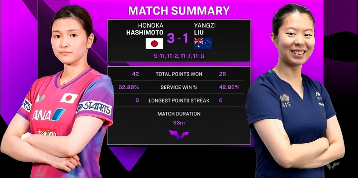 桥本帆乃香(日本)3-1刘杨子(澳大利亚)