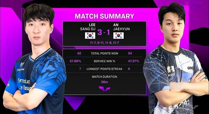 李尚洙虽然主动退出了韩国国家队,但是他在安宰贤这样的后辈面前,依然拥有巨大的笼罩气场,并且,他自从制定了“仅征战WTT高级别赛事”的计划后,也始终表现不错,基本上没遭遇过一轮游。这一战,李尚洙就是在气势上压制了安宰贤,男明星虽然目前贵为韩男首席主力,但还是没能免除被前辈训话。