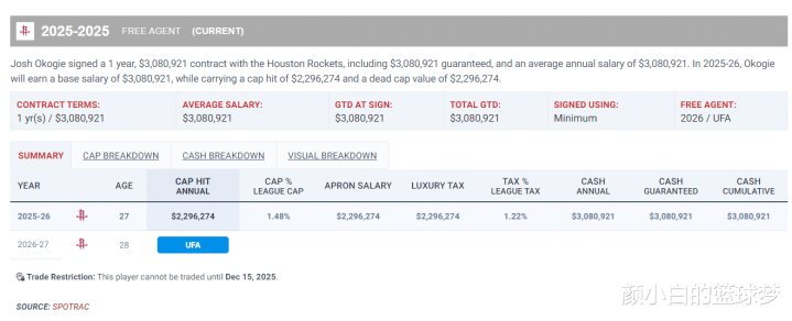 奥科吉今夏以一年230万的底薪加盟火箭,没想到他一来就成为了球队的核心轮换,更没想到他的轮换席位在谢泼德之前,乌度卡最喜欢的就是那种防守搏命的球员,恰好奥科吉就是这样的球员,他太适合火箭的体系了。