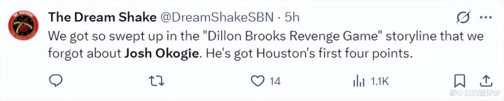 赛后太阳媒体写道:我们完全沉浸在狄龙的复仇计划情节中,却忘记了奥科吉的存在,他为火箭拿到开场的4分。