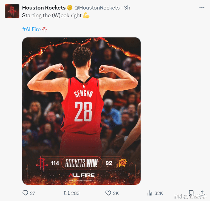 火箭114-92大胜太阳,这场比赛是火箭、太阳休赛期大交易后的第一次交手,只可惜杜兰特、杰伦-格林两位交易核心都缺席,好在阿门、申京、狄龙、小贾等人为球迷们联手贡献了一场精彩的比拼,狄龙拿到28分,阿门拿到28+8+7。