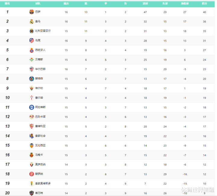 另外两场比赛,比利亚雷亚尔2-0击败赫塔菲,毕尔巴鄂1-0击败马竞;目前巴萨积40分高居榜首,皇马36分位居第二,黄潜少赛一场积35分排第三,马竞31分第四。
