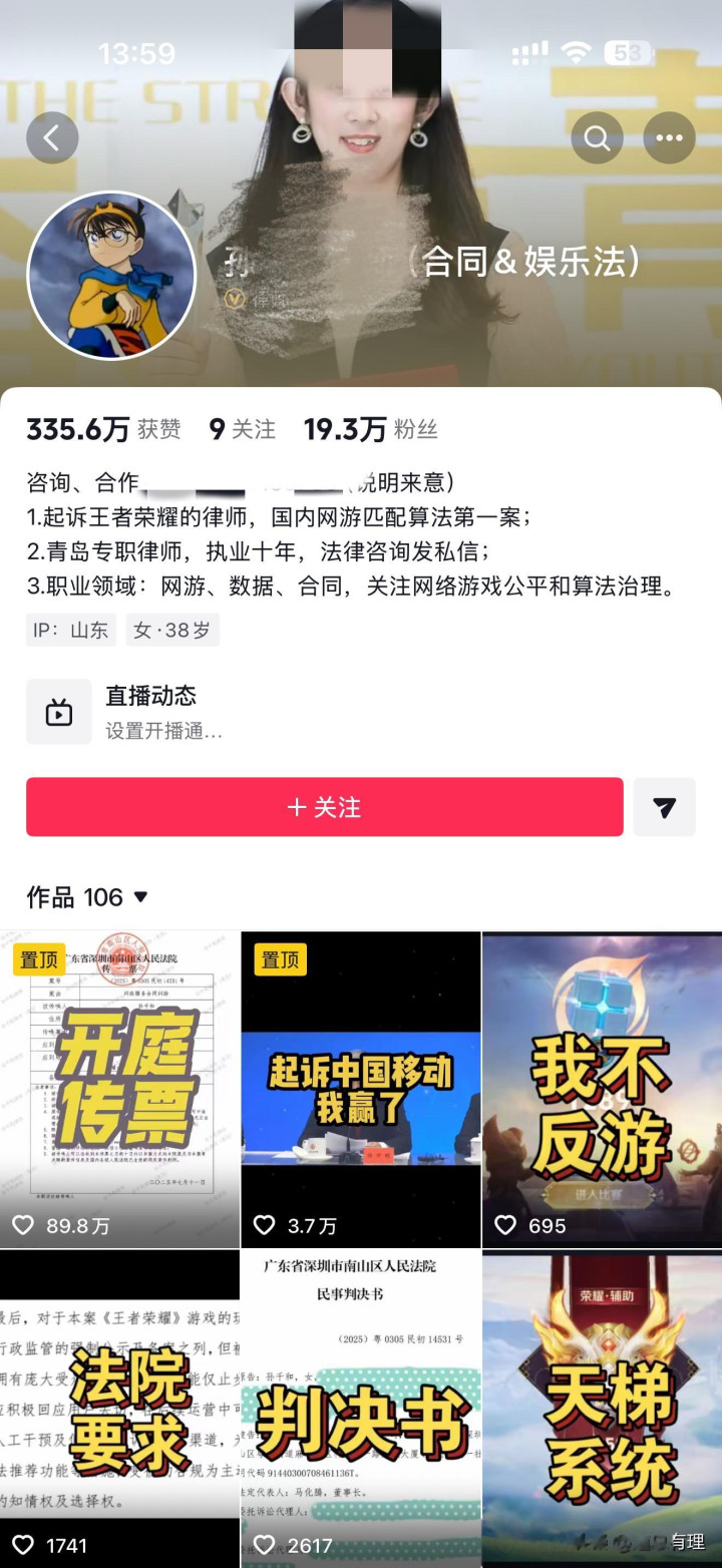 而不知何时,这场官司未宣判前,孙律师在抖音、小红书等平台的标签,已经添上了“游戏领域专业律师”的头衔。