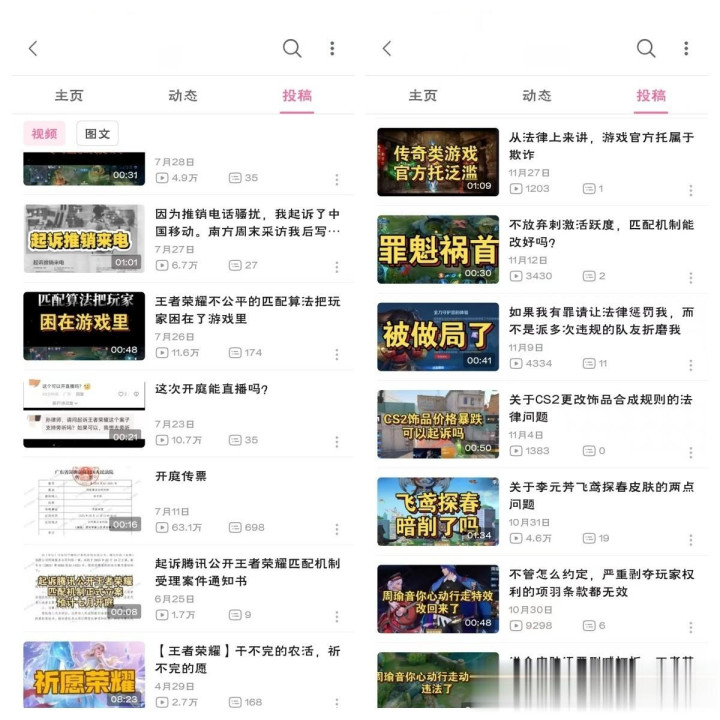 孙律师在自媒体不断周知自己起诉腾讯,被媒体关注后,她变得很忙。在抖音、小红书、B站、贴吧、知乎等社交平台上,我们可以看到她比以往活跃的身影。而原来账号发布的内容,大部分是关于婚姻、合同、著作权等法律知识的普及,现在几乎变成了清一色的游戏及游戏相关法律解读,且重点将“炮火”对准王者荣耀。