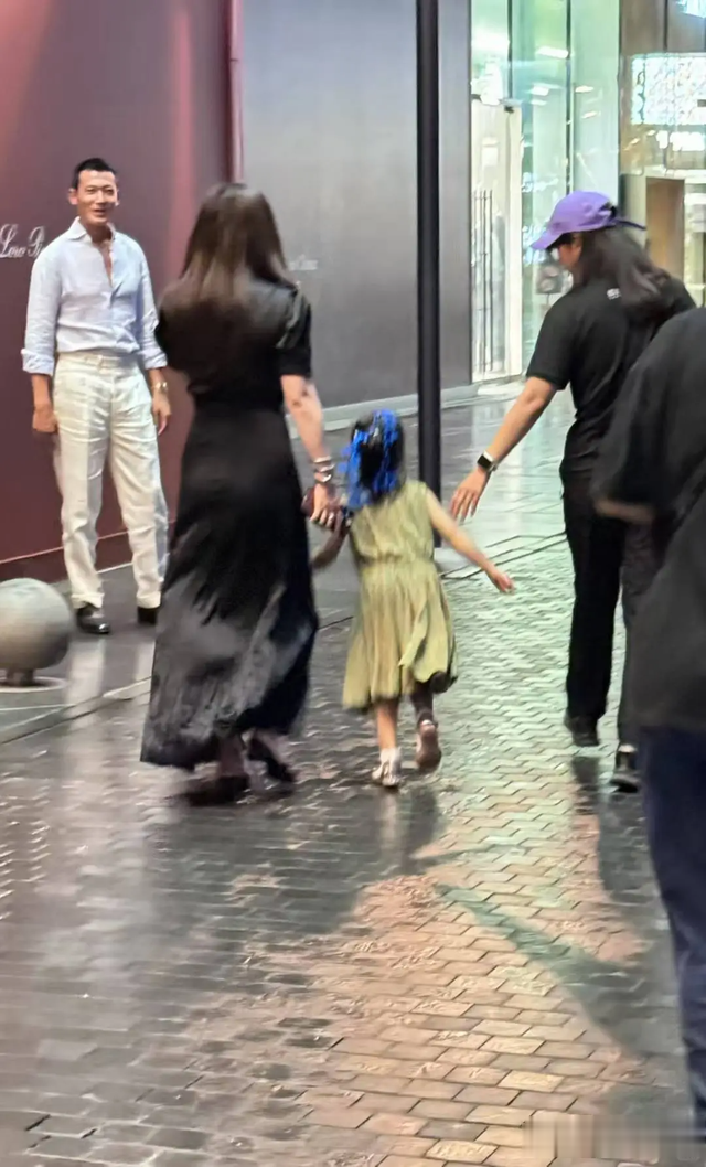 而跟在她后面的,就是朱珠的老公王昀佳和女儿,从侧面看,王昀佳的五官长得不错,打扮的也很有品位。