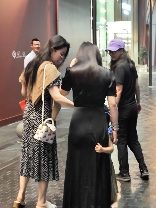 正走着,女儿却突然耍起了小脾气,只见她抱着朱珠、一手还拽着妈妈的裙子,而刘亦菲也停下了脚步,她一边笑着一边安慰小朋友,浑身散发着母性光辉。