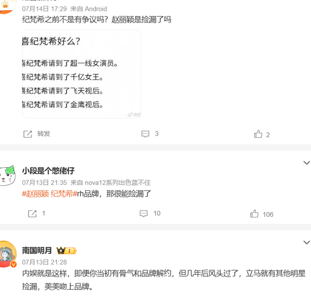 可这个时尚代言还是捡漏其他代言人放弃的,这也让网友对她的印象打了个折扣。