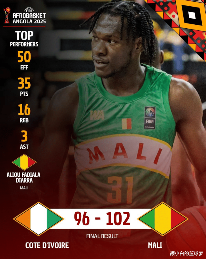 第二冷门就是马里102-96击败科特迪瓦,科特迪瓦男篮在世界排名31在非洲区第二,而马里世界排名83非洲区第12,没想到马里可以爆冷击败科特迪瓦,这场比赛马里的核心迪亚拉全场比赛15中13,三分1中1拿到35分16篮板3助攻1抢断3盖帽,命中率86.7%,三分命中率100%。