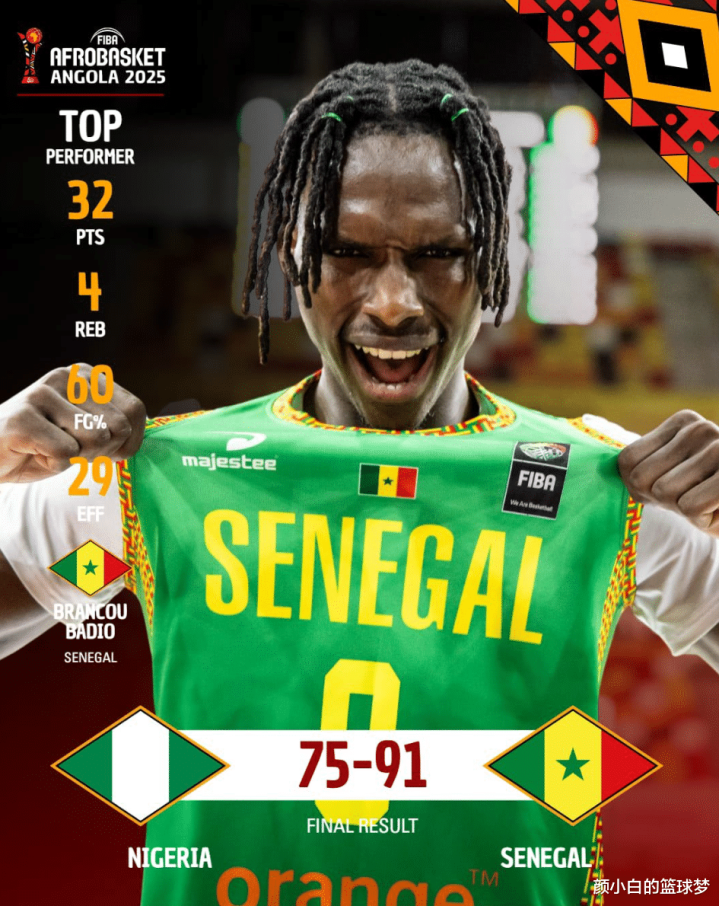 塞内加尔男篮在本届非洲杯爆出第一个冷门,他们接连淘汰了两大夺冠热门:南苏丹男篮、尼日利亚男篮,八强附加赛淘汰南苏丹,1/4决赛淘汰尼日利亚,核心巴迪奥在淘汰尼日利亚的比赛中狂揽32分4篮板2助攻1抢断。