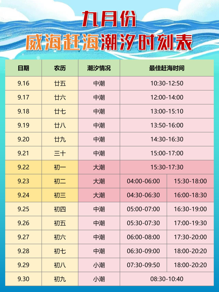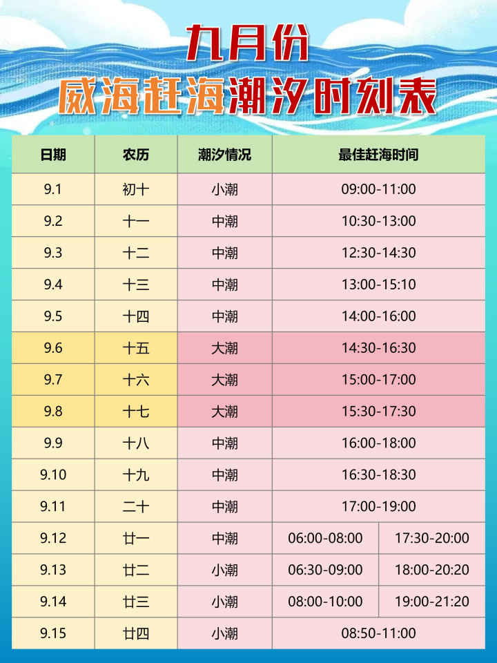 先划重点!赶海想爆桶,潮汐表比啥都重要!9月大潮期(9.6-9.8、9.22-9.24)去准没错,退潮后1-2小时是黄金时间。