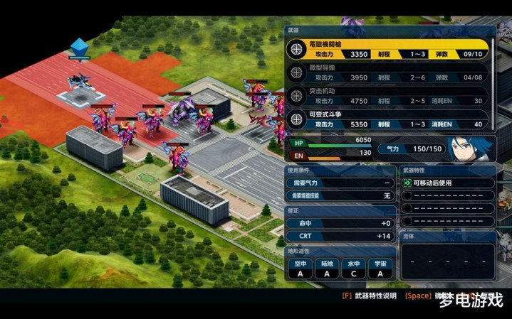 主要体现在底部会持续显示各个按键对应的操作,选中机体后也能更直观看到当前机体的状态(驾驶员气力、血量、地形适应等),包括切换武器也不用再单独拉出一个全屏页面选择,让《机战》的回合制战斗信息更全、体验更简化。
