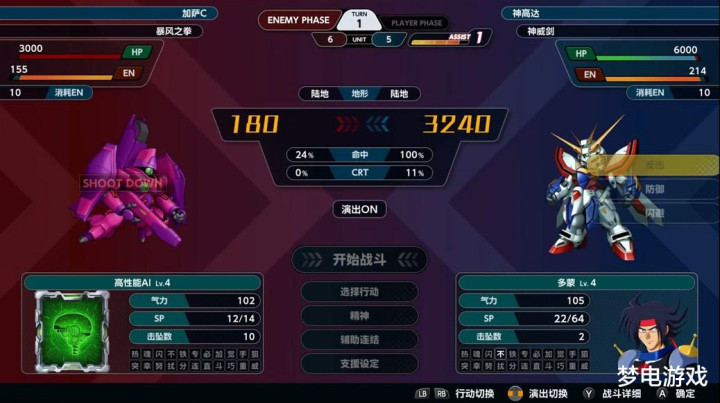 而在前几作中登场过的神高达、命运高达、重战机、圣战士系列、兔子小队、孔巴德拉V等机体也都有不错的表现,再加上《VXT》三部作品总计5台主角机体的参战,让《机战Y》的强力机体数量还是相当可观的。