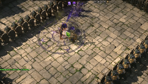 这意味着,它对有混沌持续伤害的目标自动锁头,我们来看看什么技能能挂上混沌持续伤害的这个减益效果。首先瘟疫自带一个,靈魂吸取也可以挂一个,这个时候它就能一秒两发,而且任何单位上有这个状态它都自动锁头,并且范围伤害,怪越多越密集越舒适。那么还有没有什么技能可以这个混沌持续伤害减益效果呢?